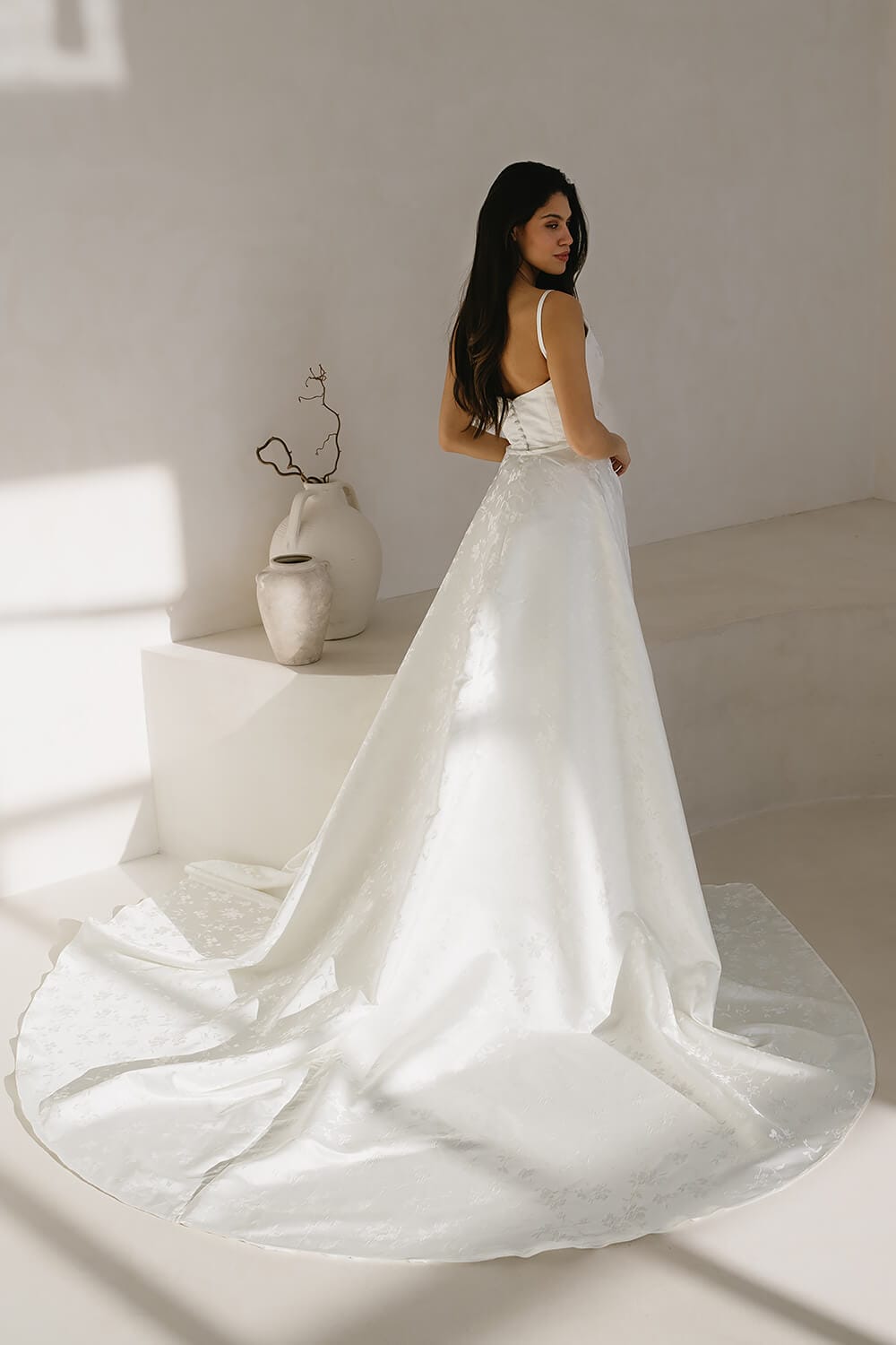 • Skirt: Mermaid wedding dress with detachable overskirt for added drama